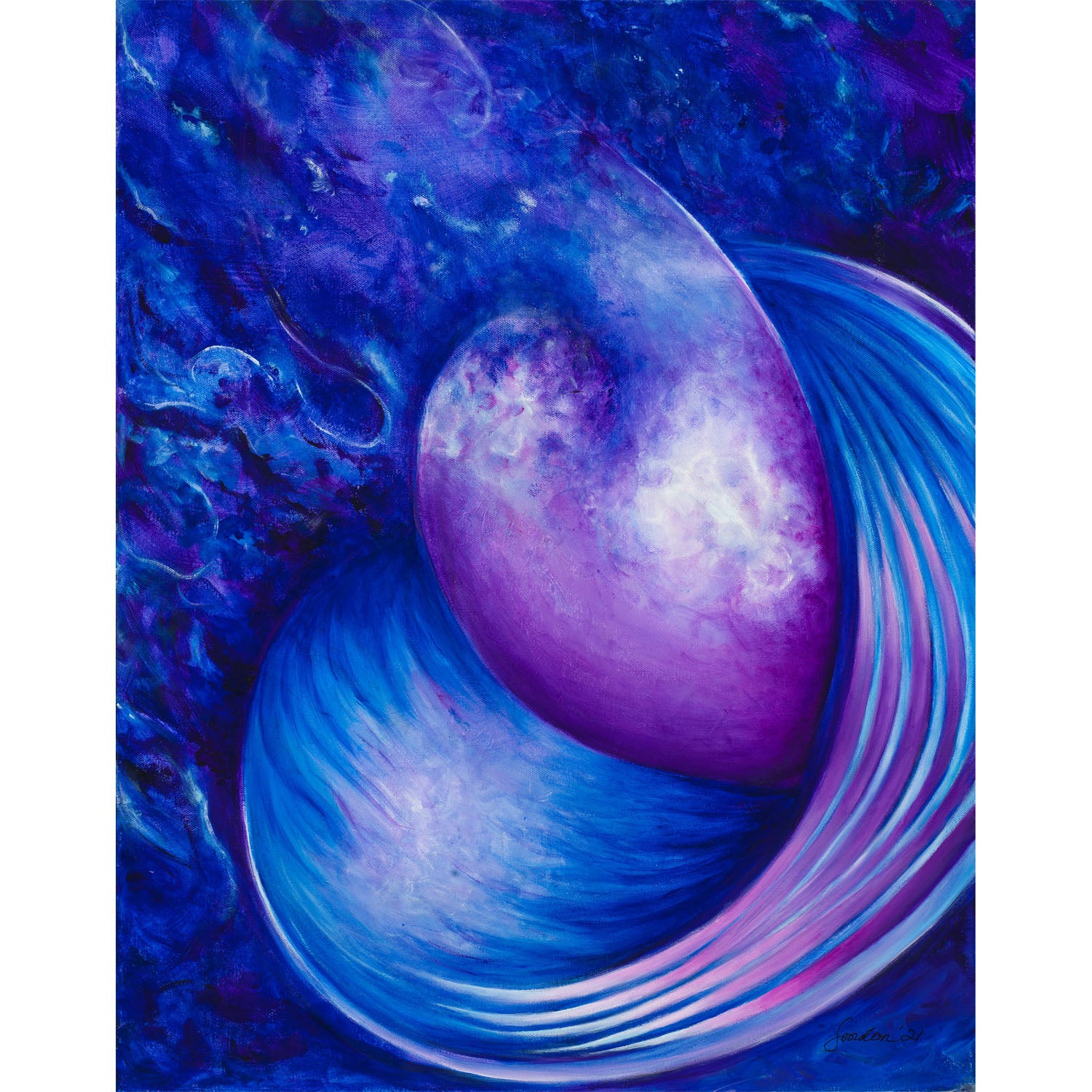 Digital print ($35) or giclee print ($120), both are 12x16". Printed on acid free archival cover stock paper from original acrylic artwork.